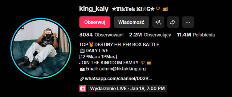 Hej kochani! Dziś przygotowałem dla Was ciekawostkę ze świata TikTok Live – krótką analizę jednego z najbardziej wpływowych i zasięgowych twórców TikTok Live na świecie. Zapraszam Was w podróż do odległej Nigerii! King Kaly, bo to o nim mowa to jeden z najbardziej wpływowych streamerów TikTok Live, szczególnie w kontekście jego formatów, strategii transmisji, sposobów angażowania społeczności, mechanizmów działania i praktycznych rozwiązań, które możecie również wykorzystać w strategii transmisji live.